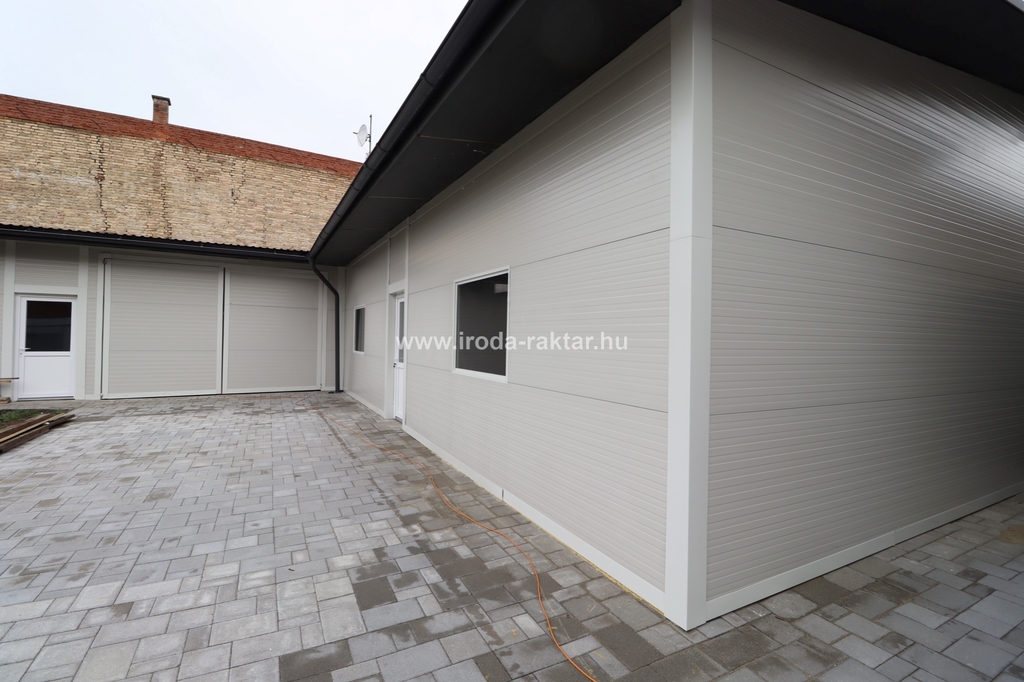 A telephely 700nm-es telek, amelyen 180nm-es 3.2-3.3m belmagasságú L alakú, viacolor falazatú, fűtetlen szendvicspanel raktár, valamint 76nm-en földszint+tetőrérrel rendelkező, felújított, légkondicionált, szociális blokkal, teakonyhával ellátott irodaépület található.