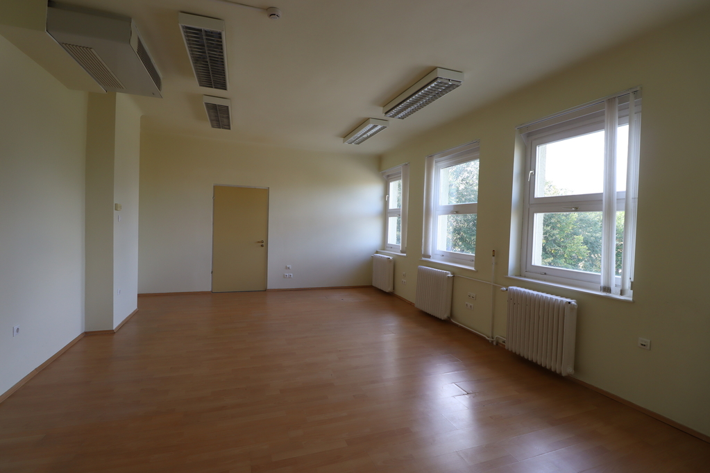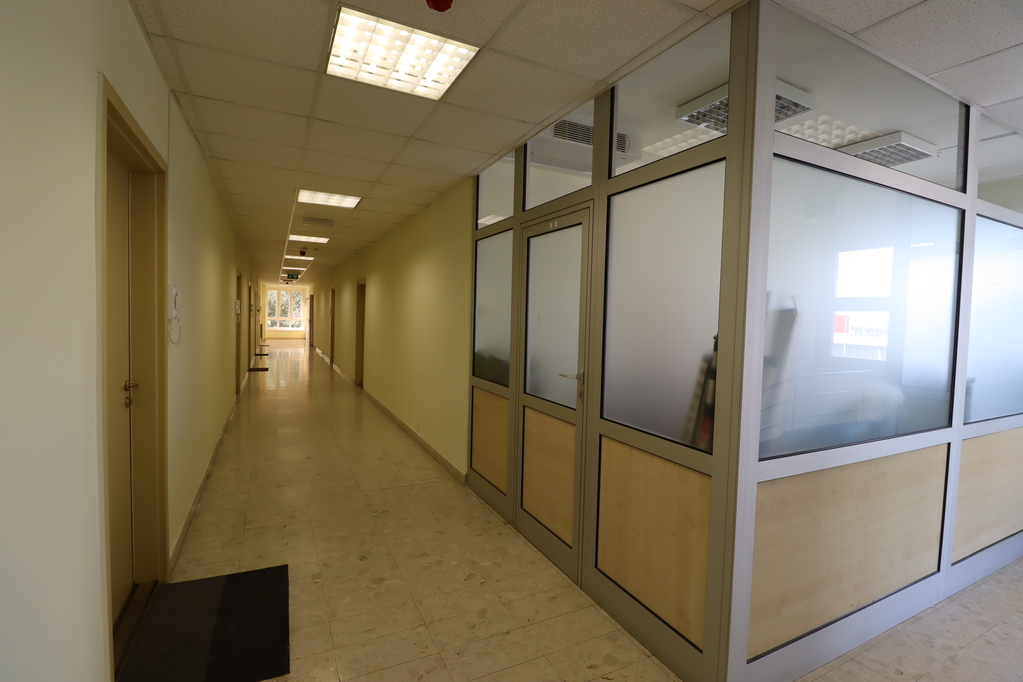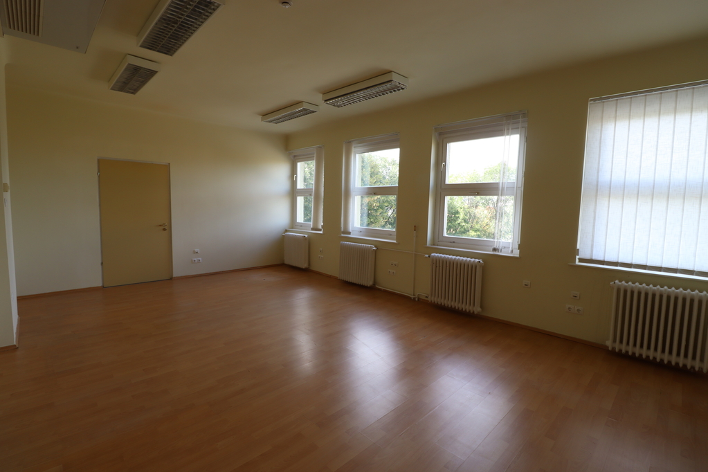 A főépület 3 szintes, szintenként 512nm-es, középfolyosós elrendezésű épület, amelyben jelenleg irodai tevékenység és raktározás történik. A helyiségek klimatizáltak.