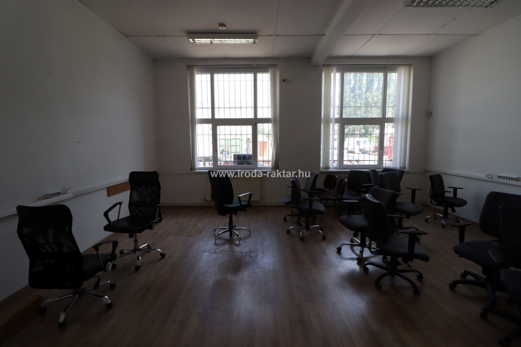 A raktár/műhely területen kb 150nm-en irodák, szociális blokk, konyha található.