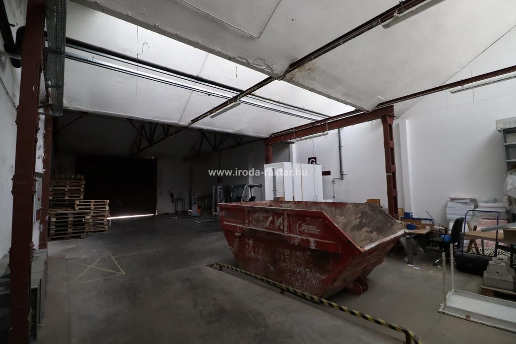 A teljes terület 1115nm-es, amely 4*5m-es szintbeli kapun keresztül elérhető, 4m belmagasságú, fűtetlen zárt 365nm-es fogadó raktár részből áll, amelyből 750nm-es 4-5m belmagasságú, pormentes aljzattal rendelkező, radiátoros fűtéssel, tető jellegéből adódóan sok természetes fénnyel rendelkező raktár/műhely terület nyílik.