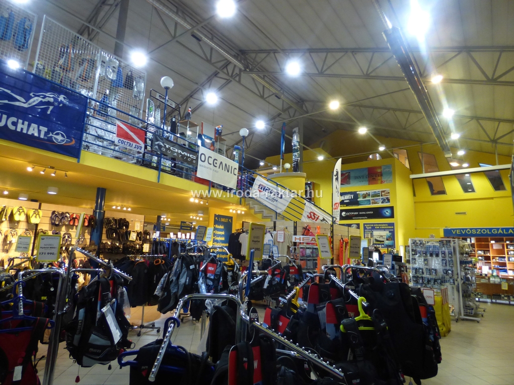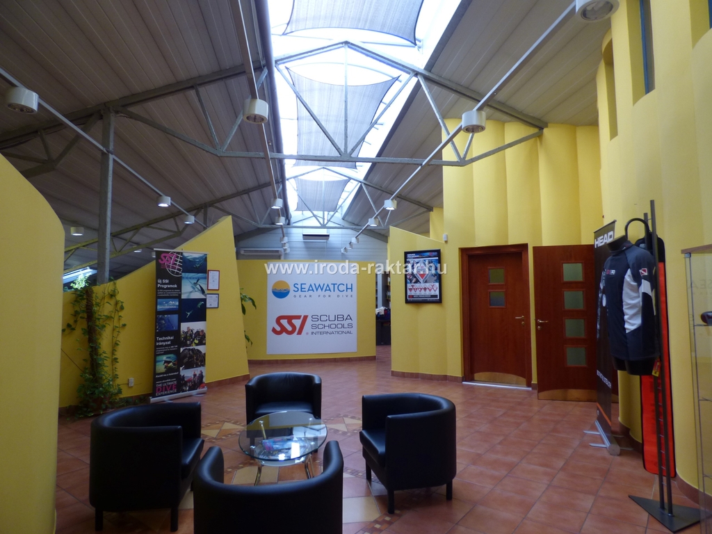 Az épület földszintjén 245nm 4.5m belmagasságú fűtött raktár, 337nm fűtött, légkondicionált, galériázott üzlettér, valamint kiszolgáló helyiségek találhatók. Az üzlettér felett, galéria szinten, 222nm alapterületű, lépcsőn megközelíthető további bemutató tér áll rendelkezésre.