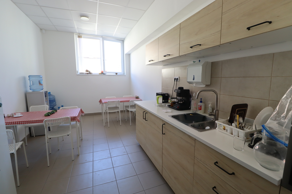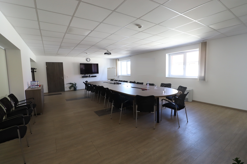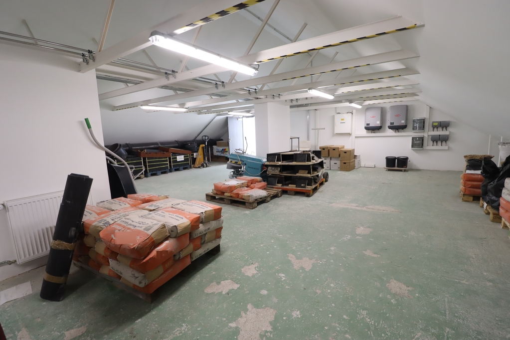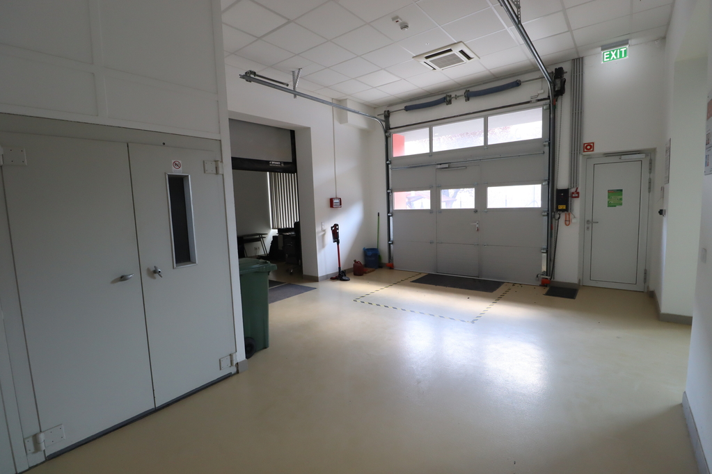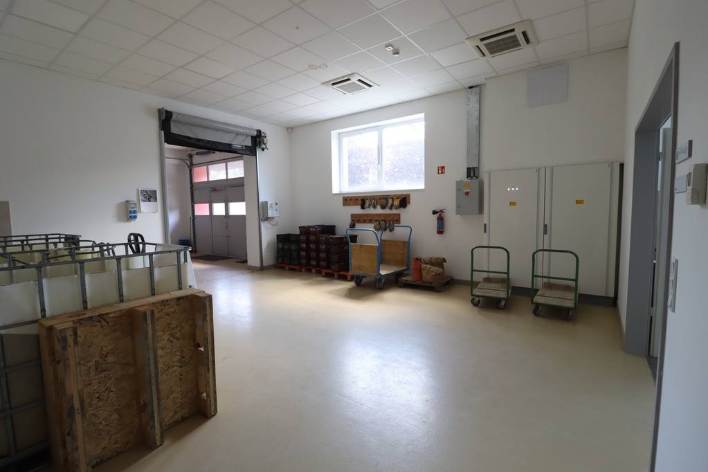 bruttó 834nm-es (nettó:697nm) jelenleg több helyiségből álló, igény szerint összenyitható, részben műgyanta, részben pormentes ipari beton aljzattal rendelkező üzemi terület, amely fan-coil rendszerrel fűtött és legkondicionált. 2 db 1.8*2.7m-es és 1 db 3.1*2.9m-es szintbeli kapuval rendelkezik. Az üzemi területhez iroda és szociális blokk is kialakításra került. Belmagasság: 3-3.5m.