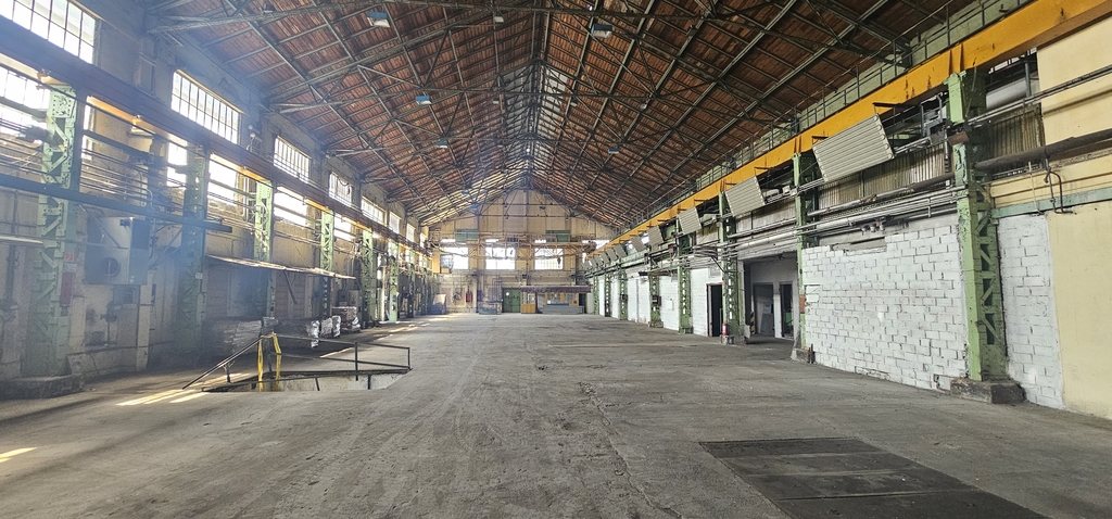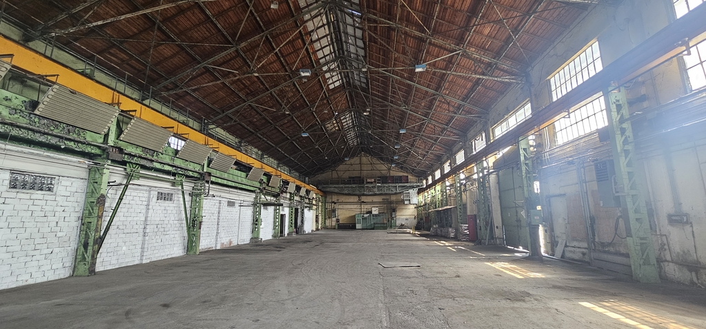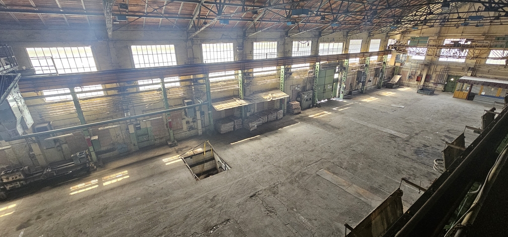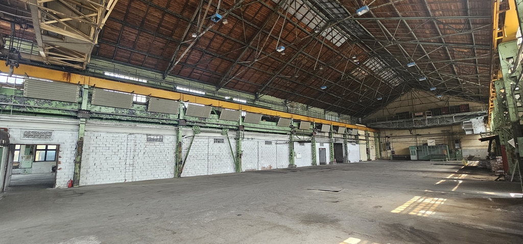- 1200nm oszlopmentes, 9-14m belmagasságú fűtetlen csarnok 4.8*5m-es szintbeli kapuval.. A csarnok darupályával rendelkezik 2 db használaton kívüli daruval (7.5t/15t). A csarnok magastetős, részben ondoline, részben trapézlemez héjalattal.