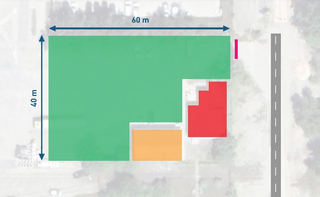 A telephely zárható, 1700nm szilárd burkolatú szabad területből illetve 150nm felújított, cellás önálló irodaépületből valamint 135nm könnyűszerkezetes raktárból áll.