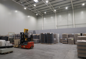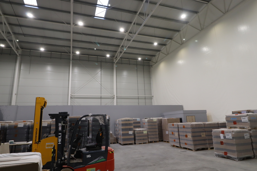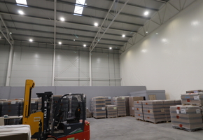 A raktárban 220nm iroda, szociális blokk és alacsony belmagasságú kiszolgáló terület került kialakításra.