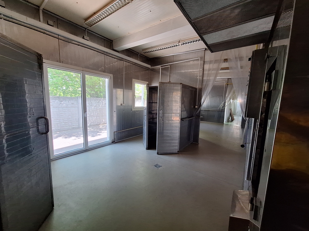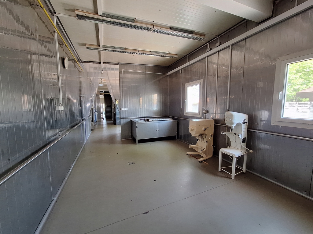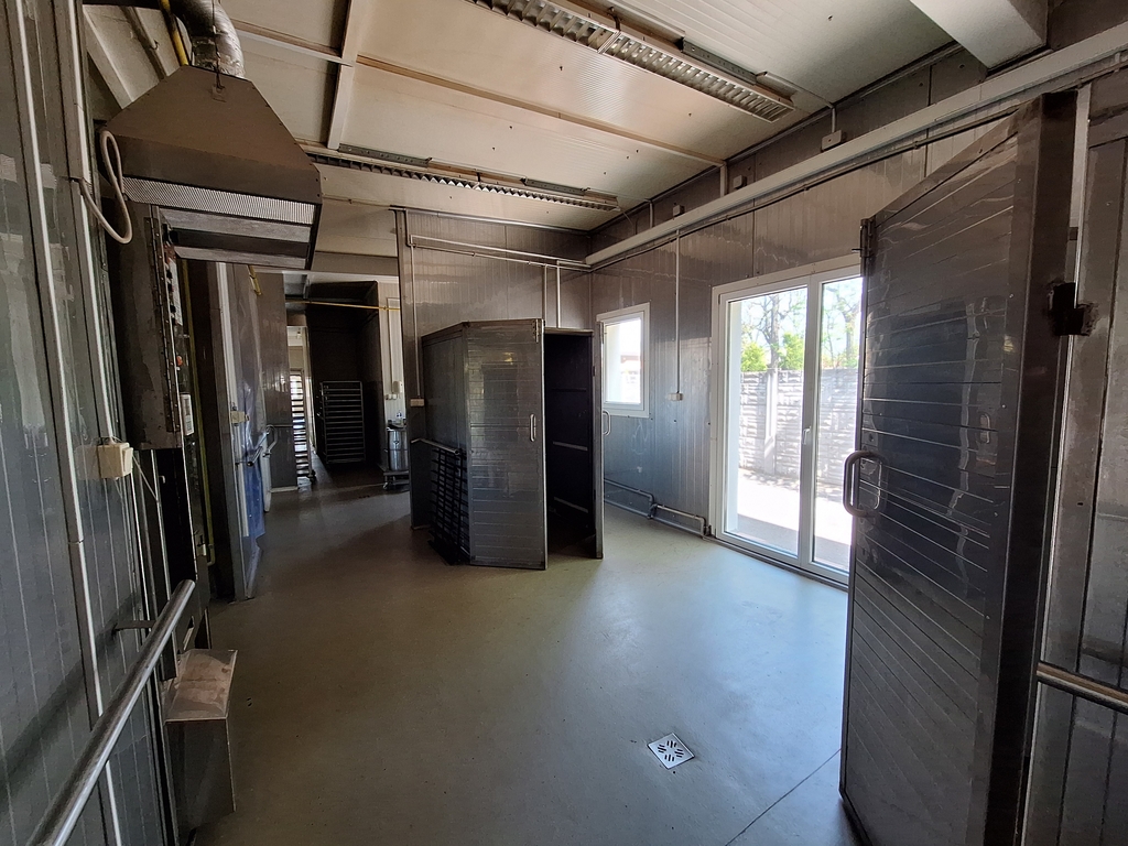 Az üzemi épület nettó 344.78 nm-es, funkcionálisan, az előírásoknak megfelelően kialakított, acél vázszerkezetű épület, mosható szendvicspanel borítással, padlóösszefolyóval. Az egyes helyiségek elválasztása mobil falakkal történt, ezért könnyen megváltoztatható a belső tér kialakítása.