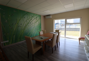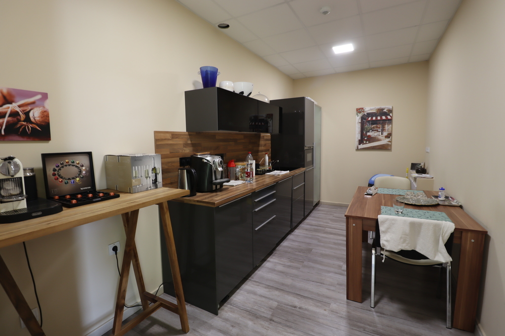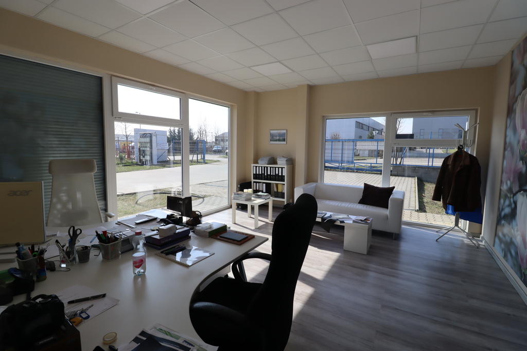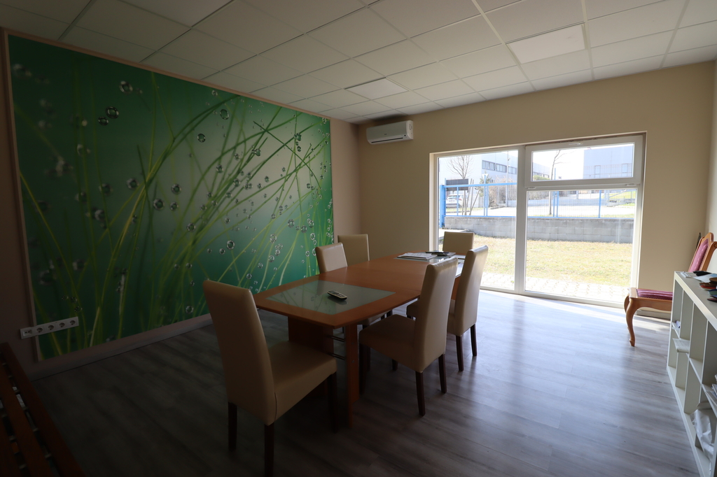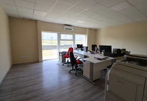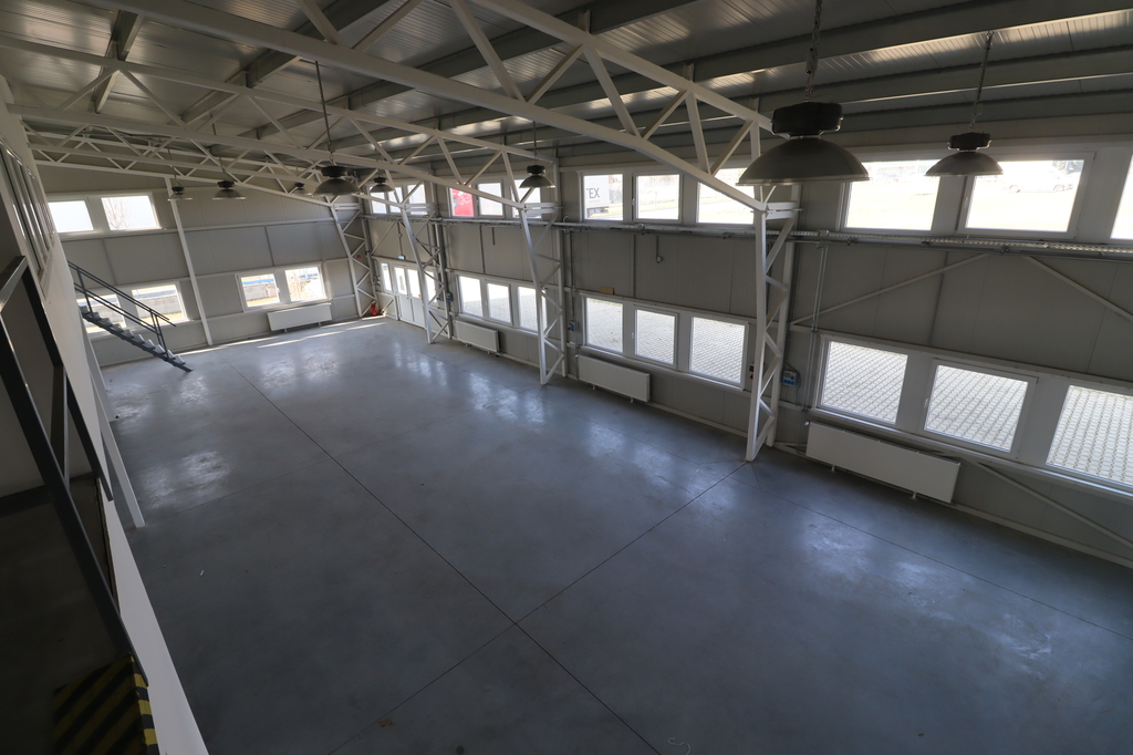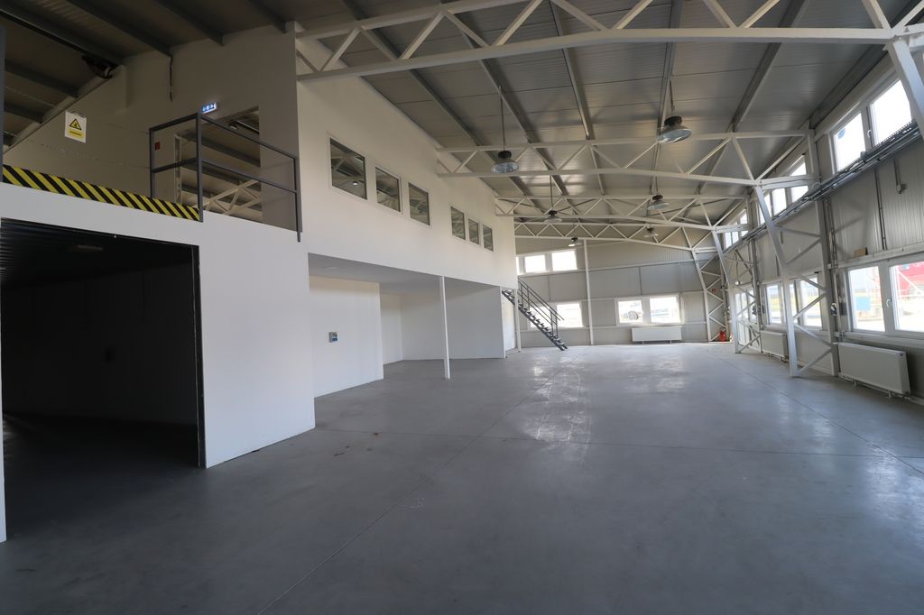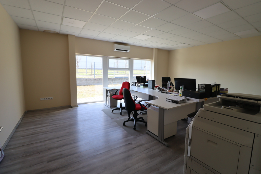 A csarnokon belül 90nm kézi raktár és kb 250nm-en iroda és szociális blokk terület került, magas színvonalon, üveg portálos megoldással kialakításra. Az irodablokk padlófűtéssel, légkondicionálással rendelkezik.