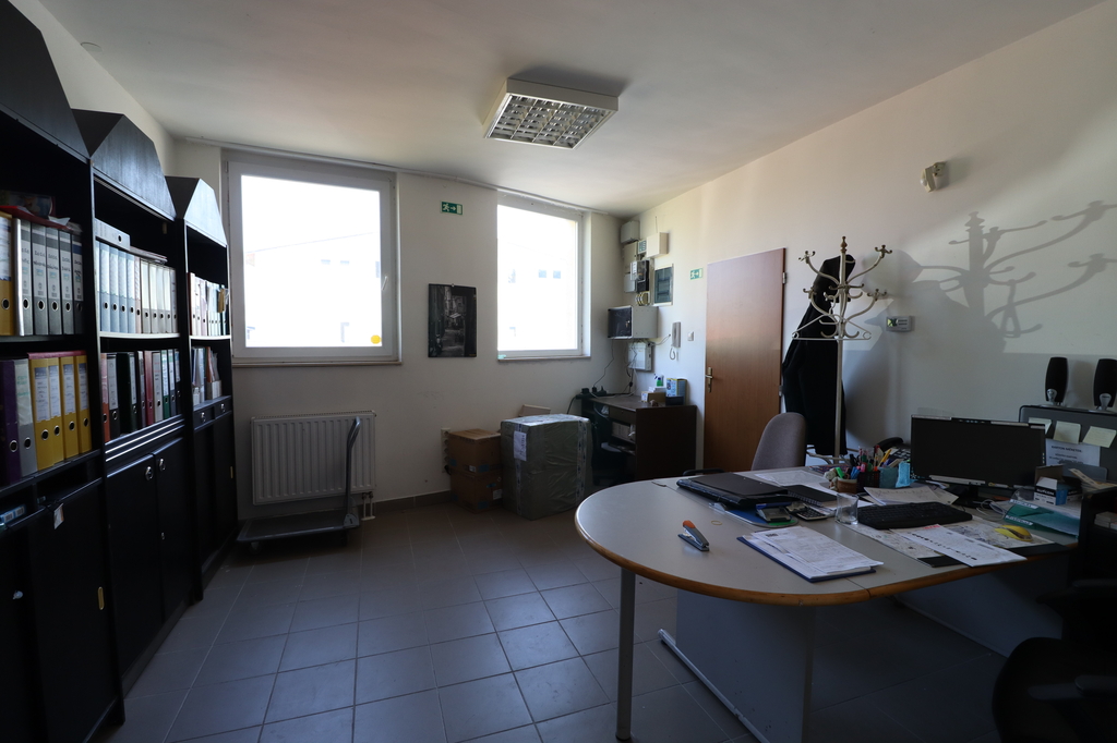 A raktár radiátoros fűtéssel, műgyanta burkolattal, természetes fénnyel, 2.1*1.7m-es kapuval rendelkezik. Az iroda, közvetlen kapcsolatban van a raktár területtel, két helyiségből áll.