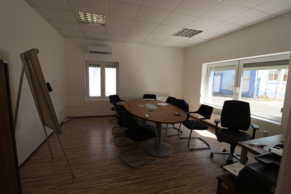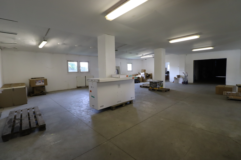 A raktár/műhely radiátoros fűtéssel ellátott, természetes fénnyel rendelkezik, pormentes ipari beton aljzata van.