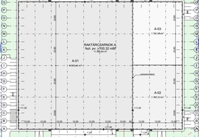Műszaki paraméterek: blokkonként 2 db dokkoló illetve 1 db szintbeli kapu, nagy teherbírású pormentes ipari beton aljzat, 12*23.6m-es raszter kiosztás, 8m-es tiszta tárolási belmagasság.