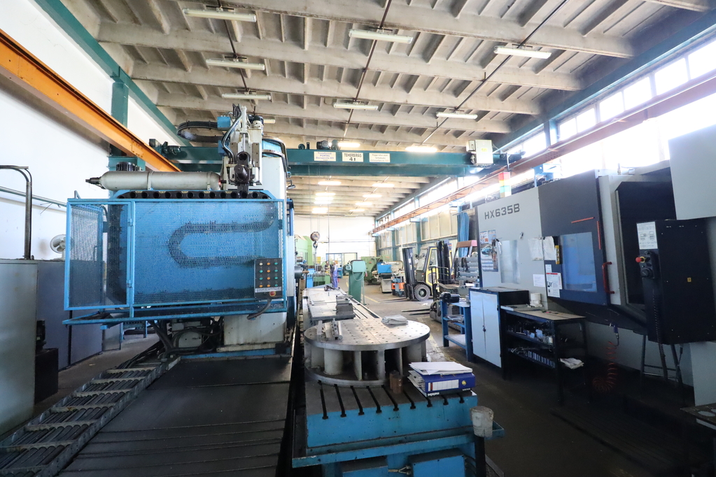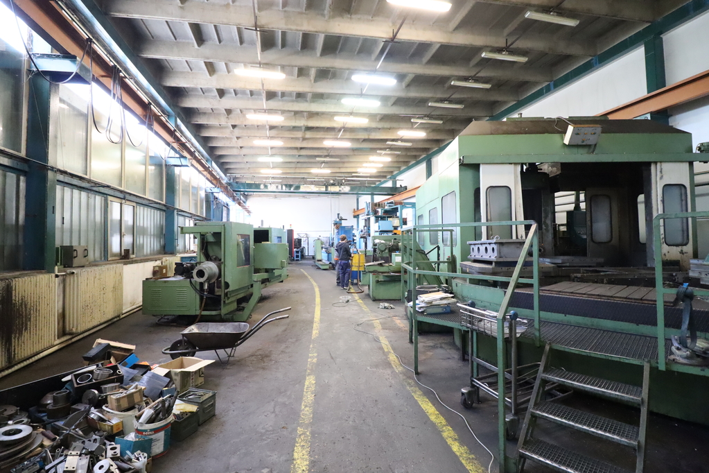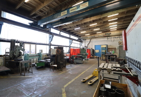 -72nm-es 4.8m belmagasságú fűtött műhely, amelyben 2t-s híddaru található, 2.5*2.5m-es kapuval rendelkezik