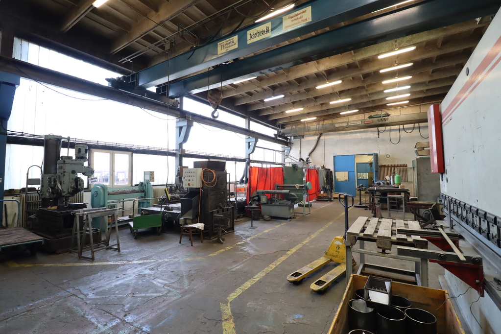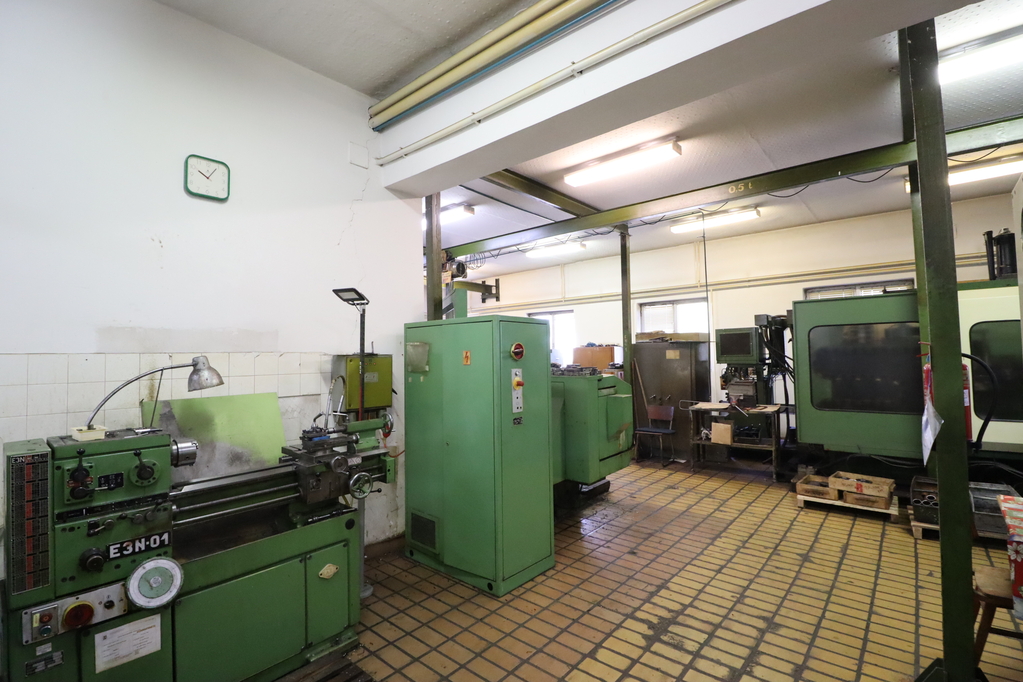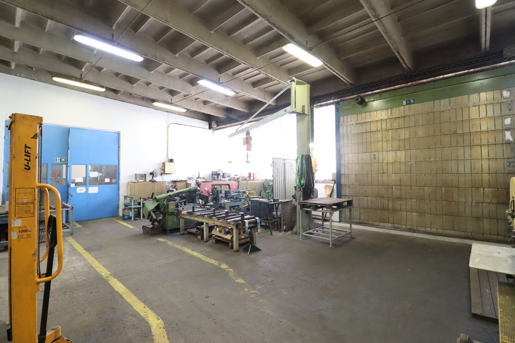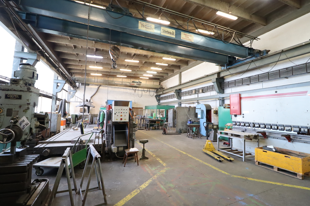- 144nm-es 4.8m belmagasságú fűtött műhely, amelyben 0.5t-s és 1t-s híddaru található, 2.5*2.5m-es kapuval rendelkezik