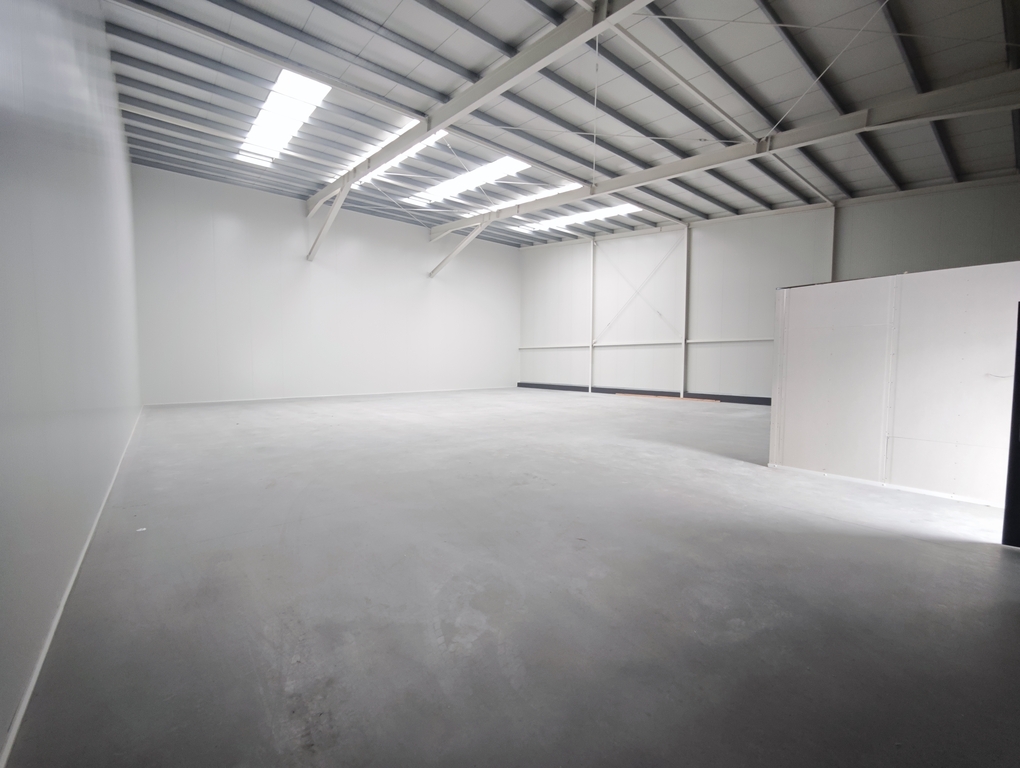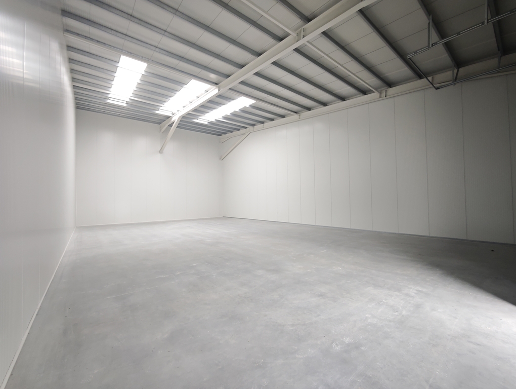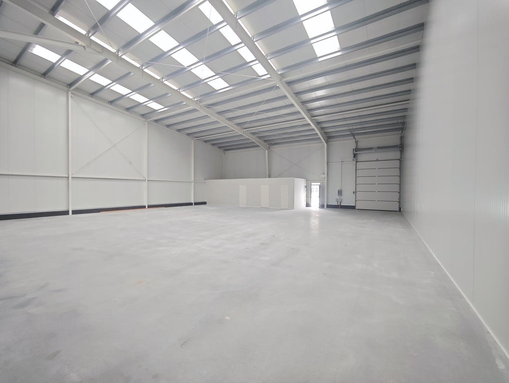 Az épület pormentes ipari beton aljzattal, 10cm szendvicspanel szigetelt falakkal rendelkezik.