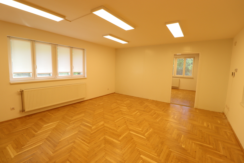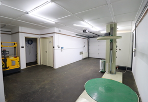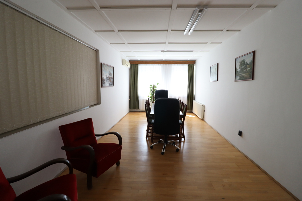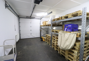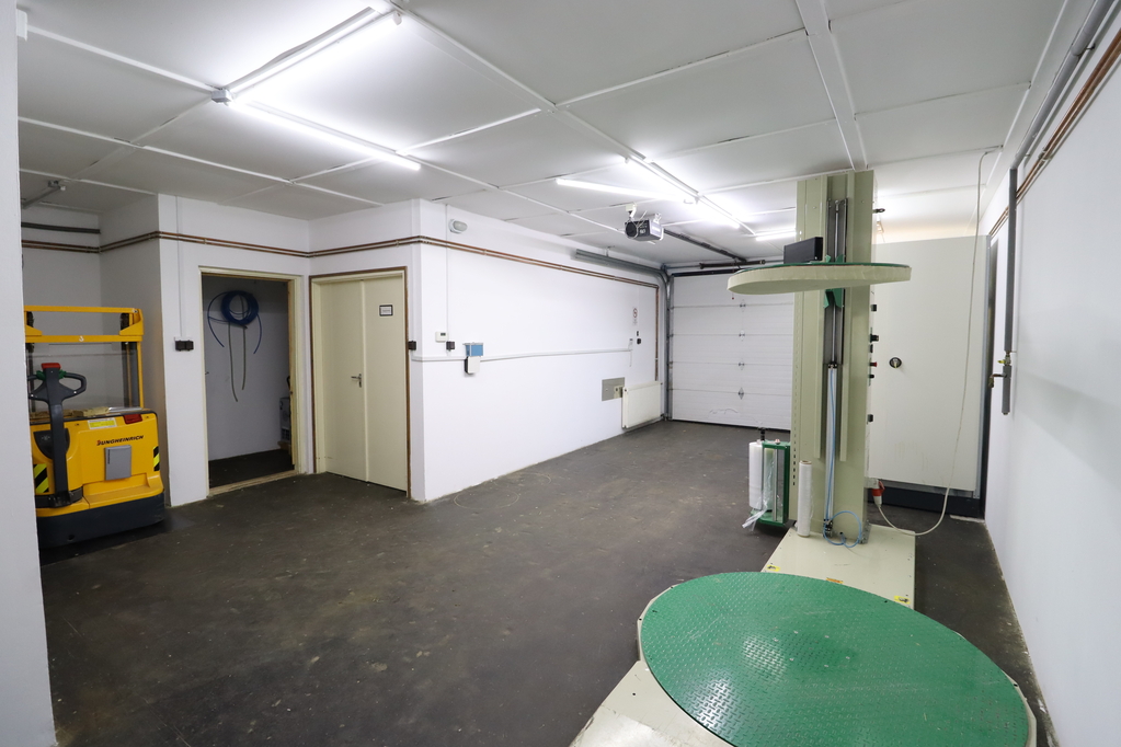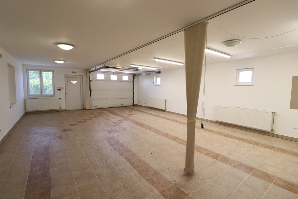 - 350nm-es két szintes tégla falazatú, trapézlemez fedésű épület, ahol a földszinten 2.5m belmagasságú, 2.8*2.3m-es szekcionált kapuval rendelkező raktár, valamint irodák, az emeleten szociális blokk, teakonyha, további irodák kaptak helyet. Minden helyiség légkondicionált.