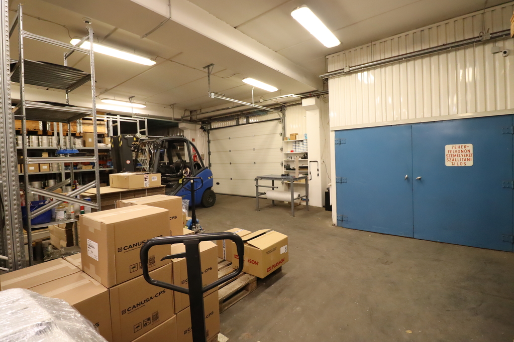 - 446nm-es, radiátoros fűtéssel ellátott, 3.6m belmagasságú, 2 db 3.6*2.7m-es szekcionált (földszinti illetve rámpás) kapuval rendelkező raktár