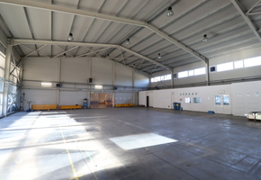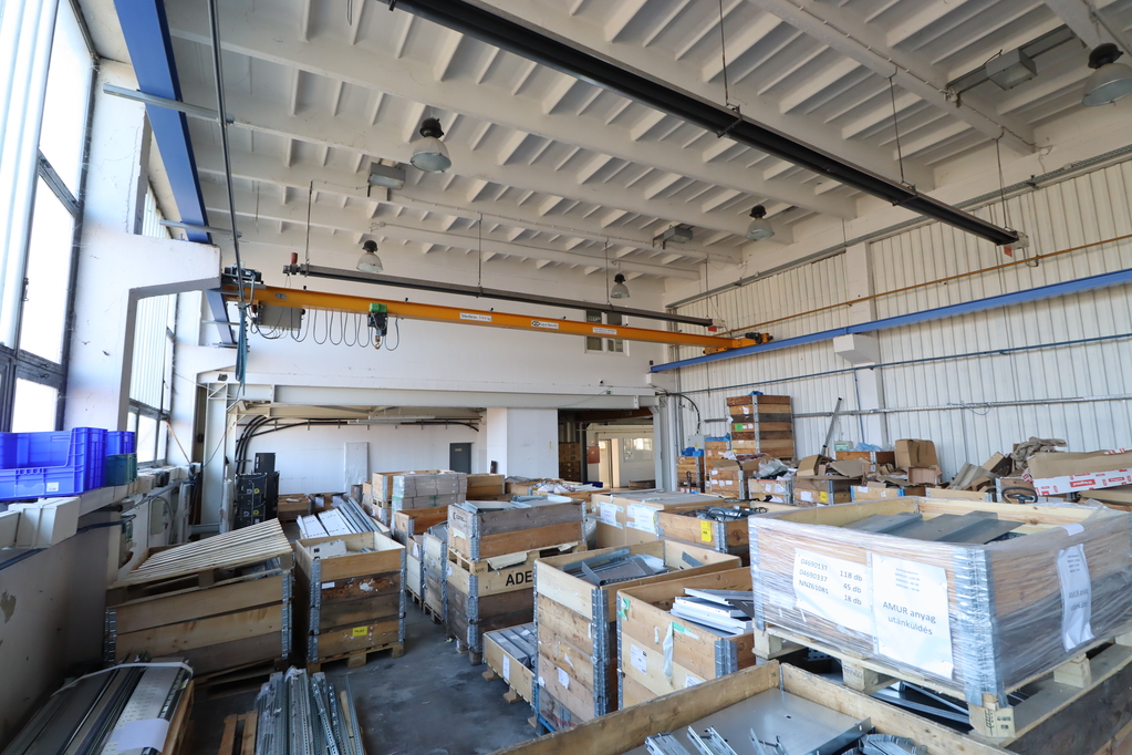 1. 850nm-es acélvázas, szendvicspanel csarnok, saját szociális blokkal, kis irodával, 3 db szintbeli szekcionált kapuval, melegvizes hőlégbefúvós fűtéssel. Belmagasság: 6m.